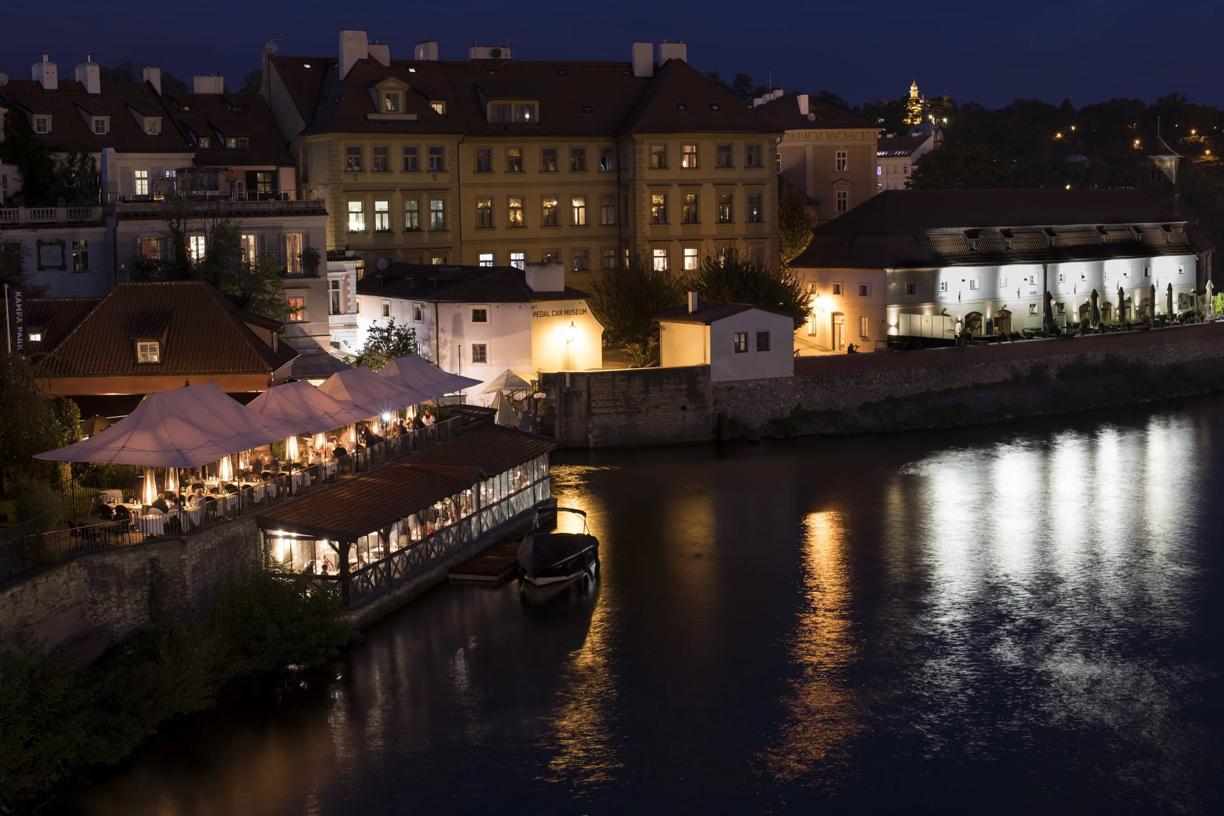 Prague New City Hall at blue hour. Prague, Czech Republic.