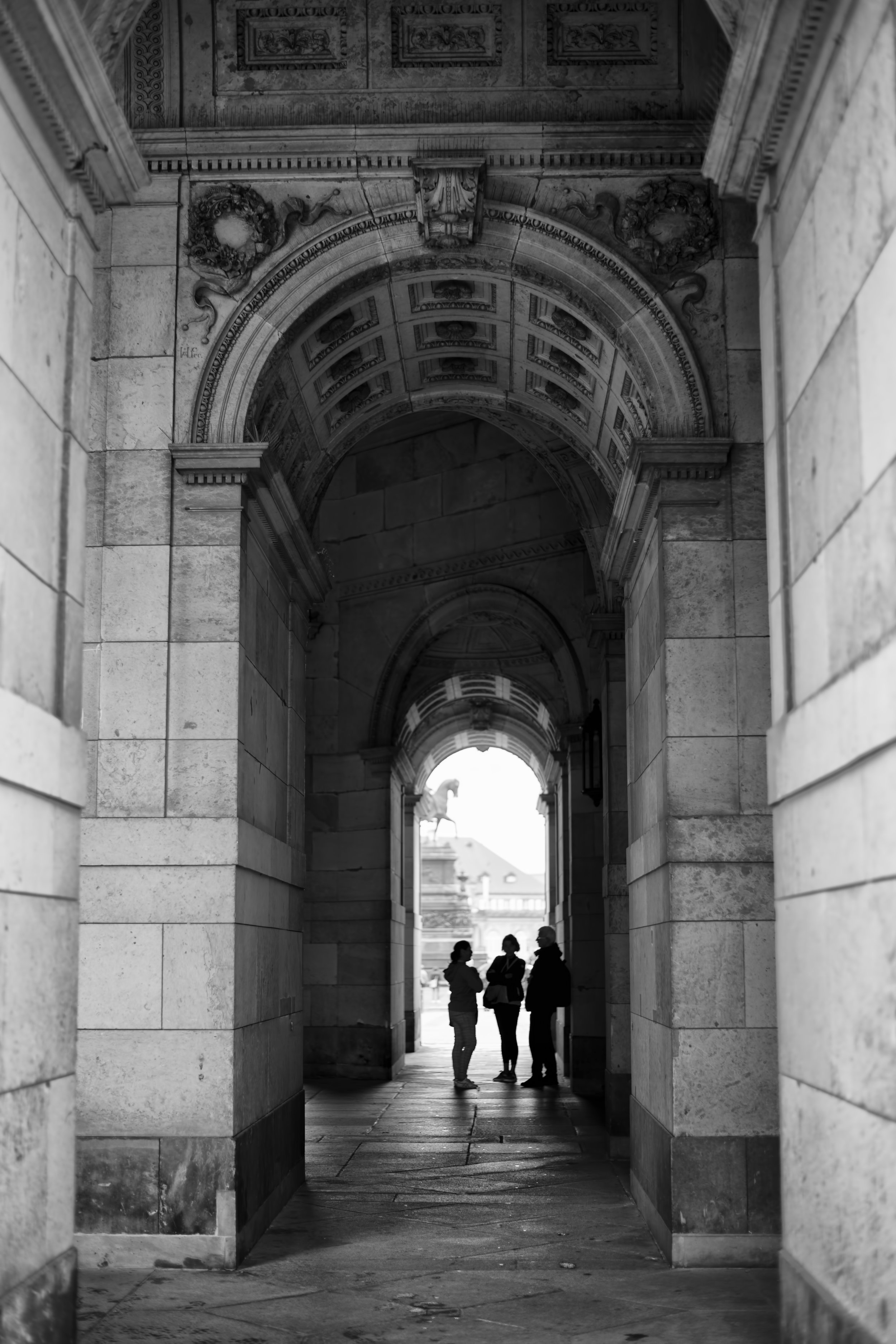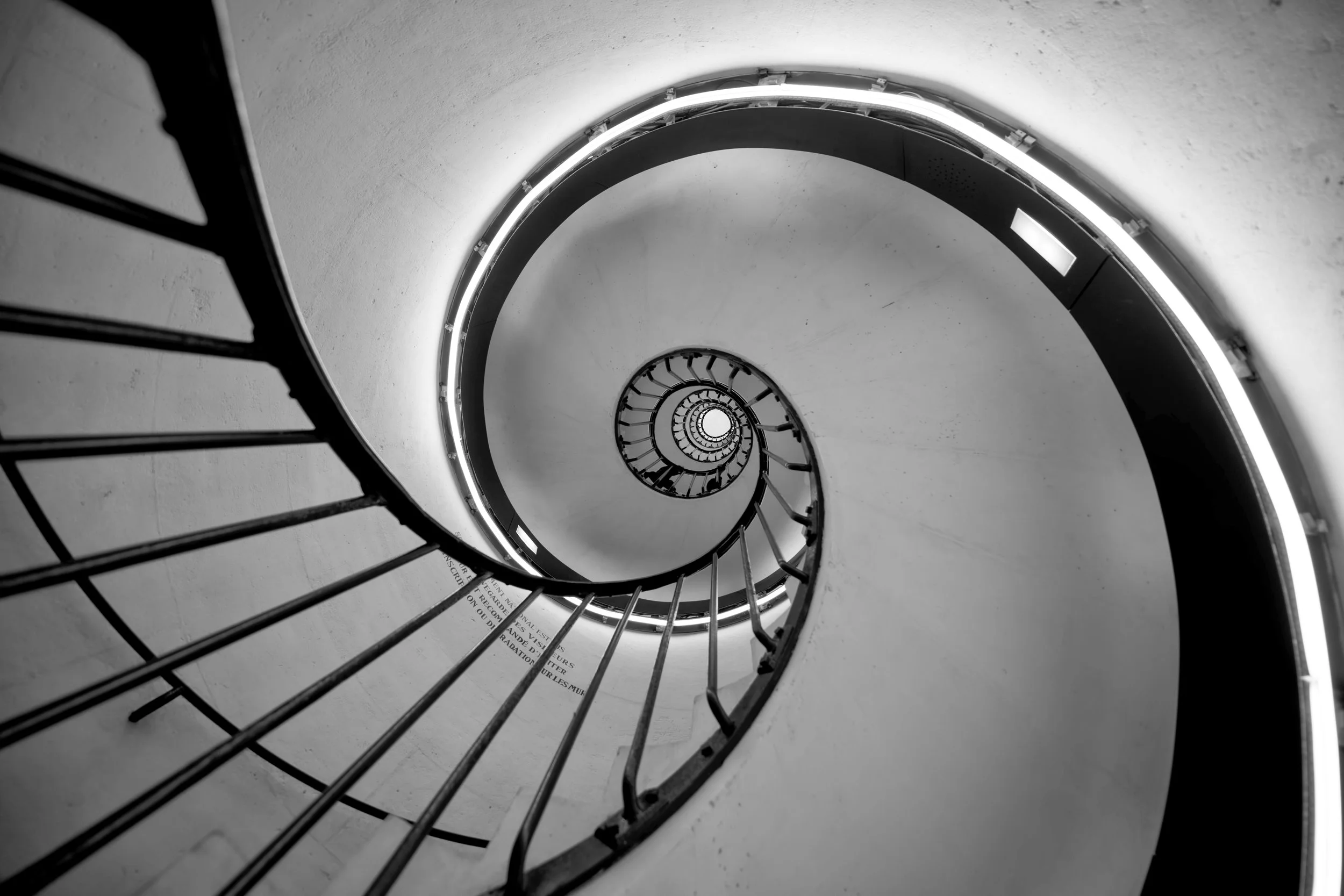 Interior of the stairs of the Arc de Triomphe in Paris.